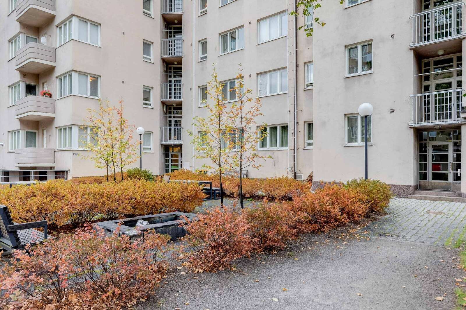 Tervetuloa Munkkiniemen portille – arvostettuun ja rauhalliseen taloyhtiöön, joka huokuu 1930-luvun arkkitehtuurin eleganssia ja kestävää laatua. Vuonna 1938 valmistunut Asunto-osakeyhtiö Munksnäsallen No 1 seisoo omalla tontillaan ja on huolella hoidettu vuosikymmenten ajan. Yhtiössä on tehty merkittäviä perusparannuksia, kuten vesi- ja viemärijohtojen sekä sähköjärjestelmän uusiminen. Uudistettu piha vesielementteineen ja leikkialueineen tarjoaa viihtyisän keitaan keskellä kaupunkia.