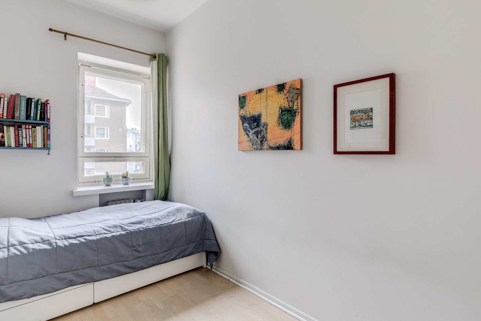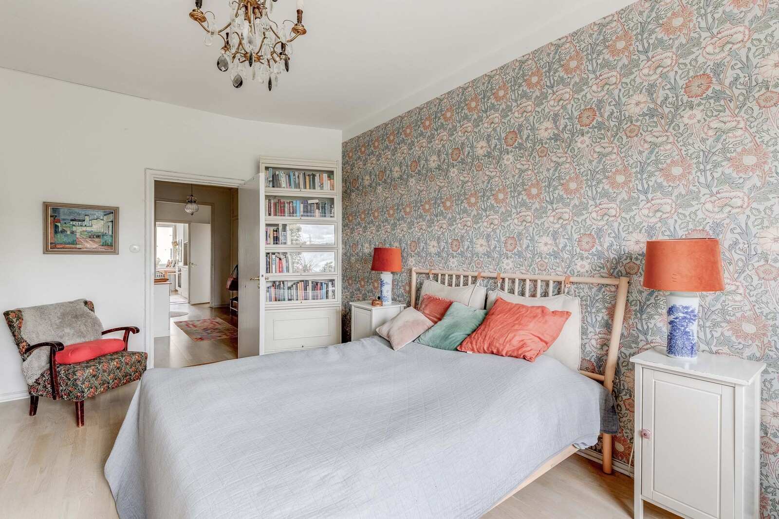 Makuuhuone | Seinät: maalattu, tapetti Lattia: parketti |