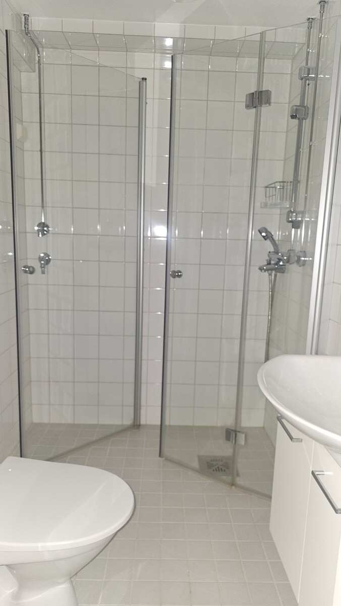 Kylpyhuone | Varusteet: suihkuseinä, pesukoneliitäntä, wc-istuin, suihku, peilikaappi |